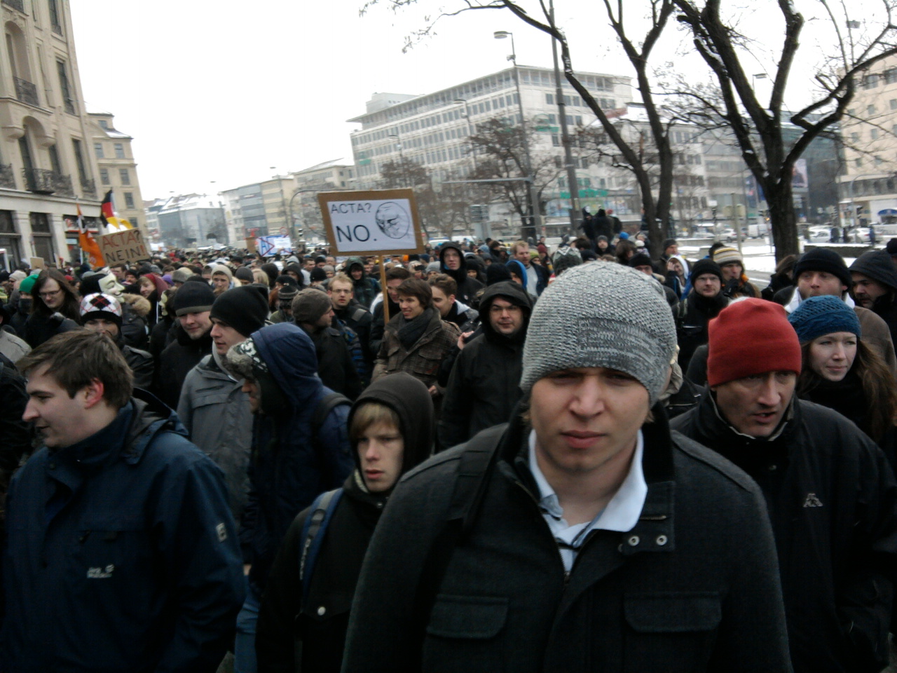 Inaktives Mitglied Geschrieben Februar 11, 2012 Trotz eisiger Kälte haben sich heute in München, am Stachus / Karlsplatz, schätzungsweise mehrere Tausend Demonstranten eingefunden, um sich gegen das ACTA-Abkommen zur Wehr zu setzen. Nach der Eröffnungsveranstaltung am Stachus ging der Protestmarsch (siehe angehängtes Foto) über die Sonnenstrasse, Briennerstrasse zum Odeonsplatz, wo die Schlusskundgebung stattfand. Große Hochachtung vor allen Teilnehmern, die hauptsächlich der jüngeren Generation angehörten, für ihren Einsatz trotz oben beschriebenen widrigen Verhältnissen. Bravo! Es ist doch beruhigend, dass bereits im Vorfeld ein derartiges Zeichen entsprechende Beachtung bei unseren Politikern fand und Deutschland dieses Abkommen nicht unterzeichnet hat. Bleibt zu hoffen, dass die restlichen Länder ebenso dieses Machwerk, jedenfalls in der jetzigen Form, ablehnen werden.